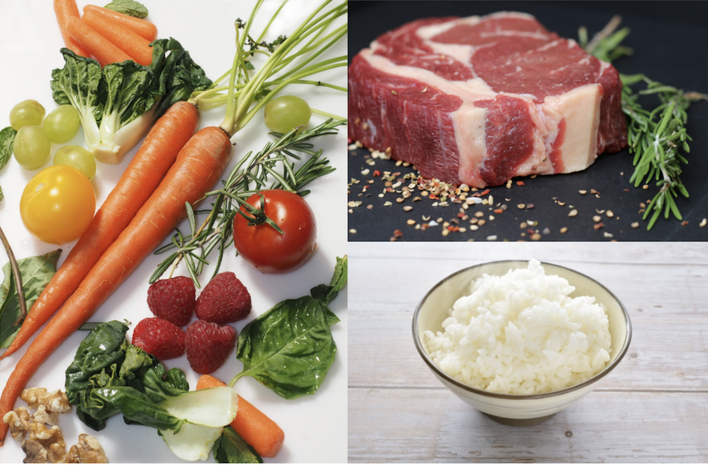 米や肉、野菜をとるタイミングは、朝と昼がおすすめです。